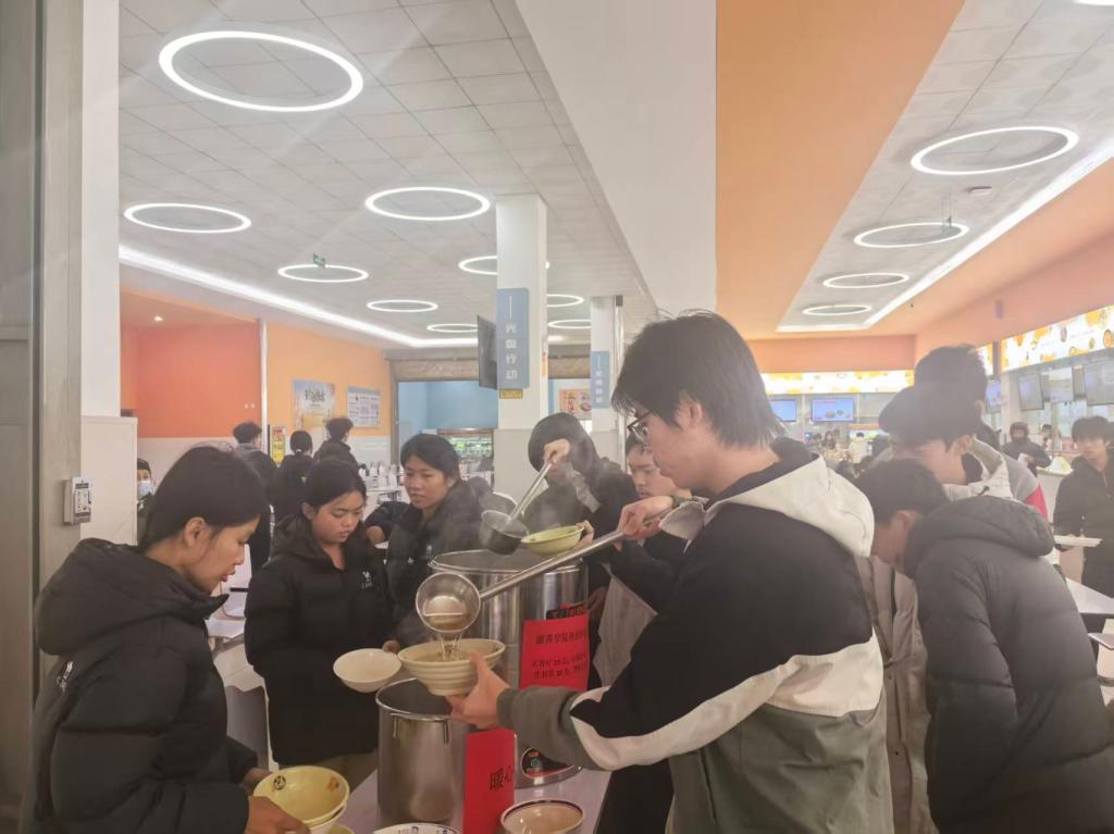 近期,寒风凛冽,气温骤降,冬日的寒意悄然包裹校园。为抵御严寒,提高身体免疫力,呵护师生身心健康,总务处联合康养学院迅速启动暖心关怀举措,在各餐厅同步开展免费供应姜汤、中药汤活动。